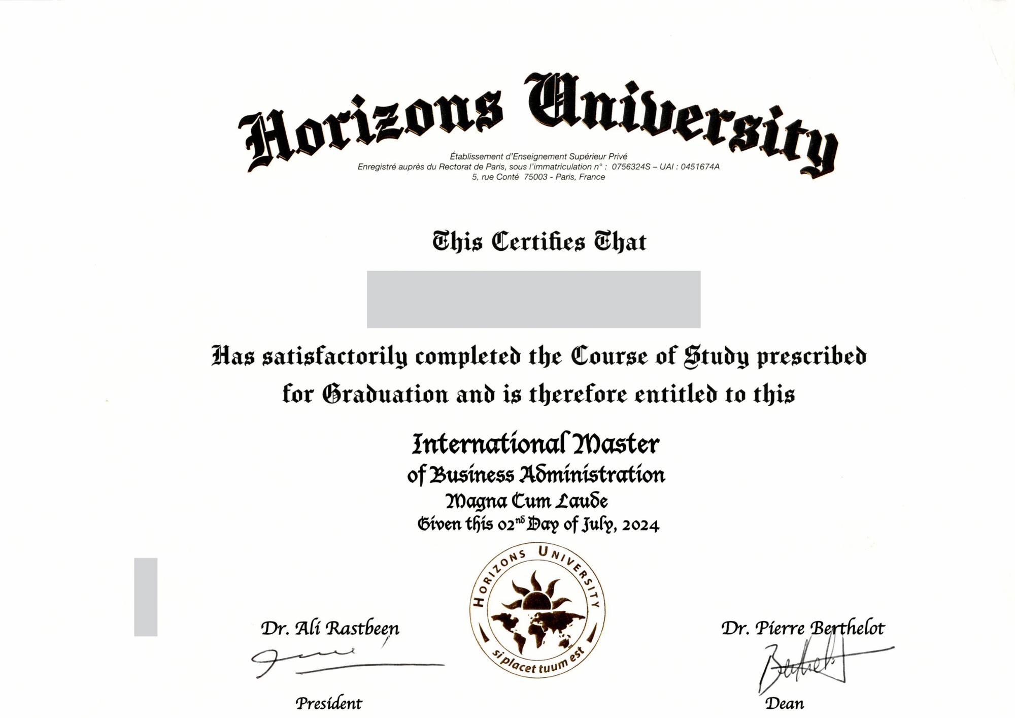 Sau khi hoàn thành chương trình, học viên sẽ nhận được bằng International Master in Business Administration từ Horizons University.